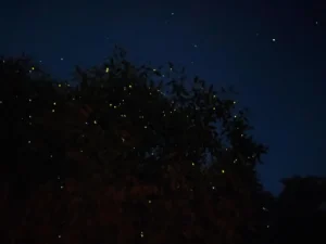 Just after sunset is ideal, when fireflies are most active along the mangrove trees.