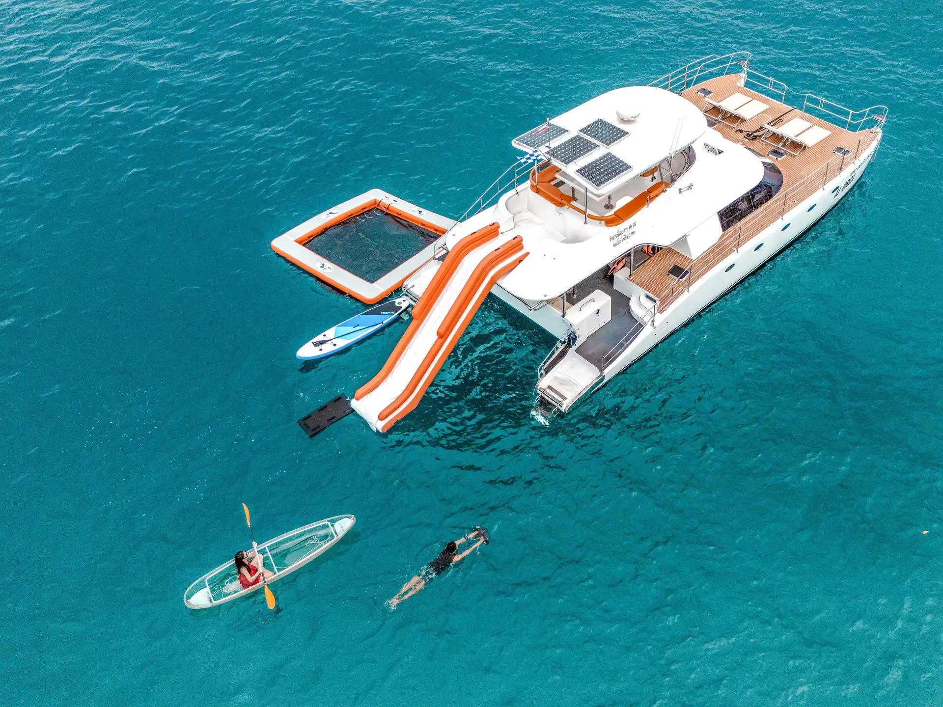 Dive into deeper waters directly from the yacht. Explore vibrant marine life, float freely, and soak in panoramic ocean views.